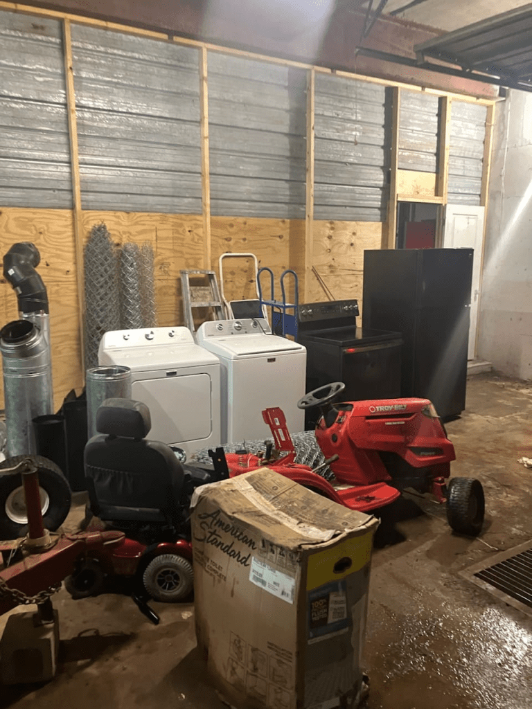 Among the items recovered were: a refrigerator, a washer and dryer, an electric range oven, and a lawnmower.